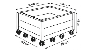 Außenmaß Hochbeet: 80 cm Länge × 60 cm Breite × 45 cm Höhe