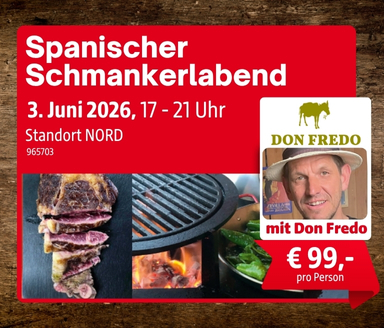 Hinweis: Dieser Abend bietet Ihnen ein besonderes kulinarisches Erlebnis und ist nicht als konventioneller Grillkurs zu verstehen. Lassen Sie sich von den Aromen Spaniens verzaubern!